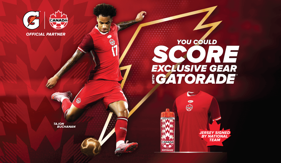 Gatorade Canada is teaming up with Canada Soccer to bring you exclusive gear! There are 3 signed Team Canada Soccer Jerseys(valued at $1,000) and 100 Canada Soccer Gatorade Gx Bottles (valued at $40) to be won!